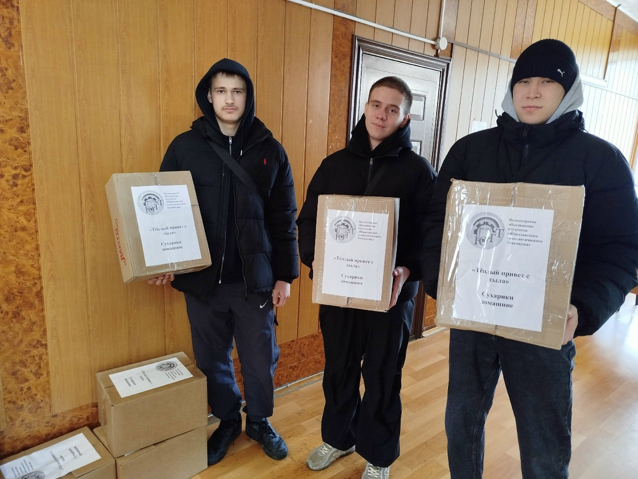 Студенты и преподаватели Юрюзанского технологического техникума привезли 8 коробок свежеизготовленных сухариков — вкусных, сытных и таких необходимых на передовой, а также тёплые носки и консервы.